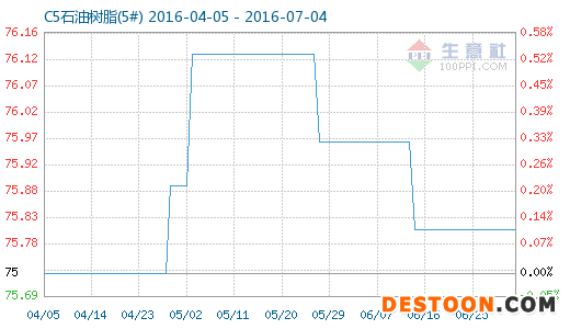 7月3日C5石油树脂(5#)商品指数为75.81,与昨日持平,较周期内最高点114.19点(2013-11-25)下降了33.61%,较2016年03月14日最低点75.00点上涨了1.08%。(注:周期指2012-06-01至今)