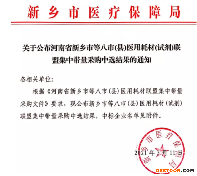 5月11日,河南省新乡市医疗保障局公布了河南省新乡市等八市(县)医用耗材(试剂)联盟集中带量采购中选结果。