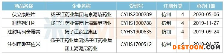 表1:扬子江在审批的产品情况