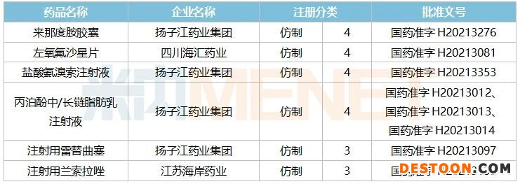 表2:扬子江及子公司2021年至今获批的仿制药情况