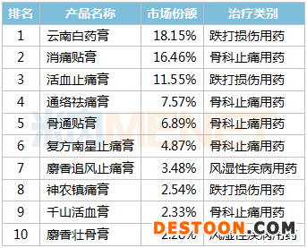 超10%!复方南星止痛膏、麝香追风止痛膏6大产品增速亮眼