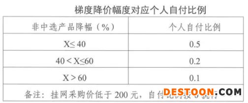 在梯度降价周期结束后,视情调整医保支付上限。降价幅度大于60%,医保个人支付比例为0.1,挂网采购价低于200元,自付比例按0执行。