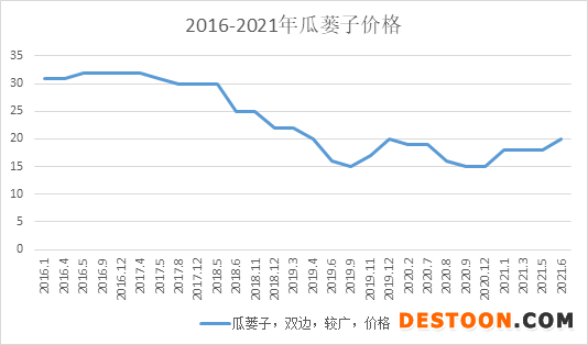 图2:瓜蒌子2016-2021年市场价格走势图