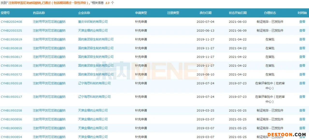 目前,注射用甲泼尼龙琥珀酸钠已有国药容生制药、天津金耀药业、辽宁海思科制药、重庆华邦制药4家企业以补充申请获批过评。其中,天津金耀药业此前已有4个规格获批过评,1.0g和2.0g两个规格是首家过评,500mg规格是第2家过评,125mg规格是第3家过评,而此次获批的40mg规格是第3家过评。