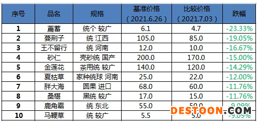 表2:市场跌价品种TOP10