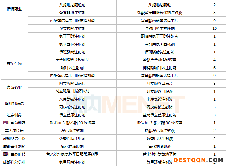 以企业%20通用名药品计,12家四川企业的42个过评品种暂未纳入集采,其中科伦药业有18个,倍特药业有9个,苑东生物有4个,康弘药业及四川科瑞德均有2个。