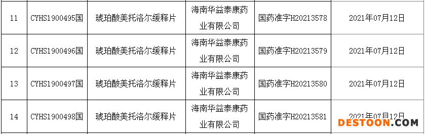 琥珀酸美托洛尔缓释片新分类报产情况
