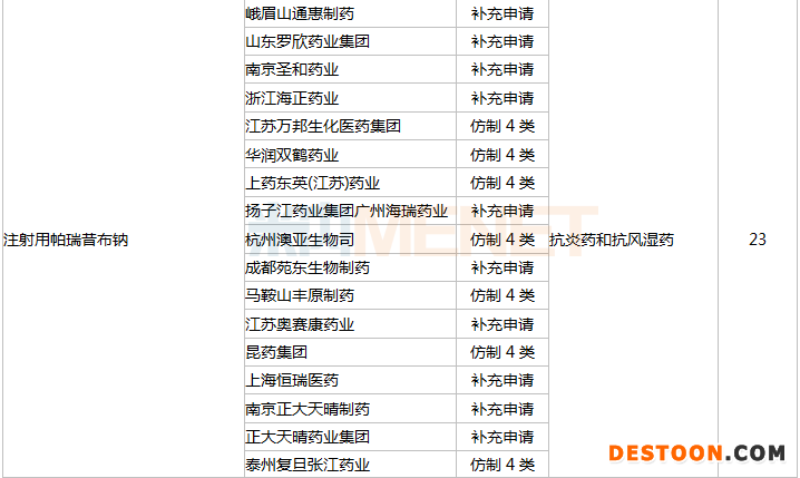 7月15日,上海医药发布公告称,其全资子公司上药东英以仿制4类报产的注射用帕瑞昔布钠获批,视同过评。米内网数据显示,2020年中国公立医疗机构终端注射用帕瑞昔布钠销售额超过20亿元,辉瑞市场份额最大。截至目前,该产品生产企业已接近30家,过评企业超过20家。注射用帕瑞昔布钠是第四批集采品种,齐鲁制药、湖南科伦制药、江苏奥赛康、扬子江药业集团广州海瑞药业等10家企业中标。