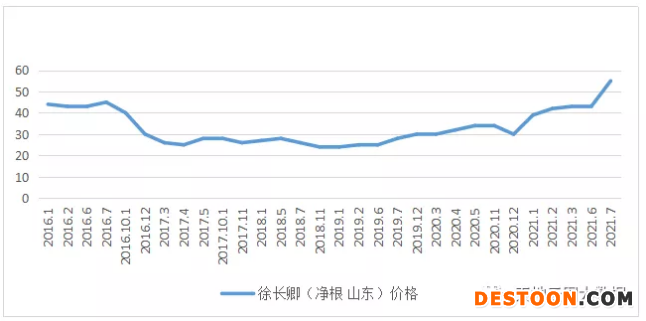 2019年南北春旱,4、5月山东、河北产区干旱,单产下滑。产区商家看好后市行情,而受当年三季度开始,农作物纷纷上涨行情的刺激,徐长卿行情也在缓慢上涨。2020年产量不大,价格继续上涨,进入2021年,因整体库存不大,徐长卿价格也随之创新高。