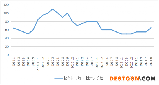 图:款冬花2016-2021年市场价格走势图
