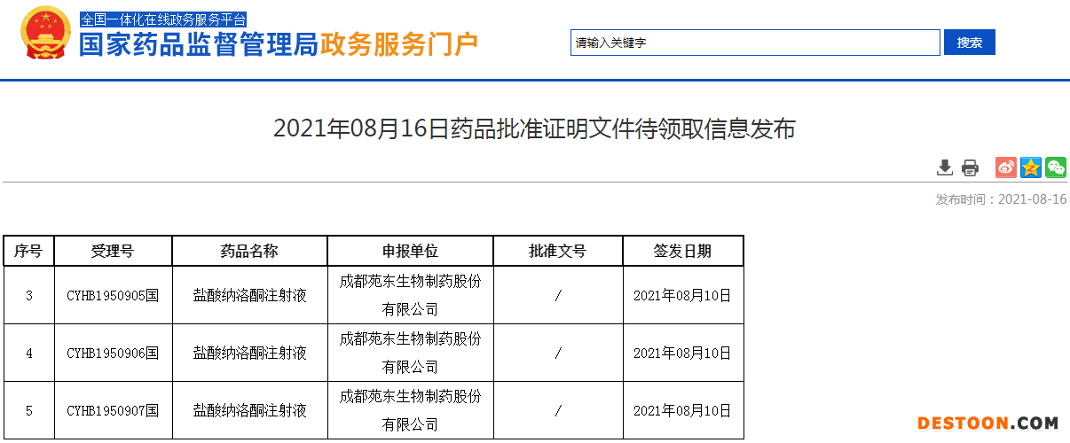 8月18日讯 8月16日,NMPA官网显示,苑东生物的盐酸纳洛酮注射液通过一致性评价,为该品种首家过评企业。盐酸纳洛酮为阿片受体拮抗剂,2020年在中国公立医疗机构终端销售额超过7亿元。截至目前,苑东生物已有16个品种过评(5个为首家)。