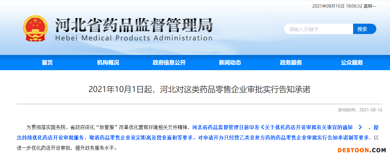 8月16日,河北省药监局再次发文强调,将取消对药品零售企业设定距离及营业面积的限制,自2021年10月1日起生效。