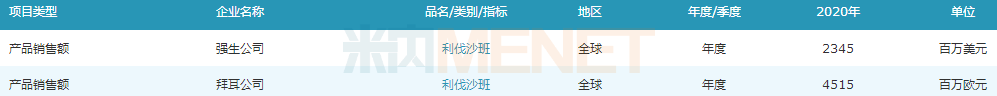 利伐沙班是拜耳和强生共同研发的一种高选择性的口服直接抑制Xa因子抗凝药,用于择期髋关节或膝关节置换手术成年患者,以预防静脉血栓形成。该产品具有临床疗效好,给药方便,无需调整剂量及常规监测等优点,2020年全球销售额超过70亿美元。