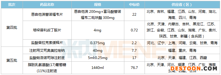 海思科国采中标情况(单位:元/片、瓶、袋)