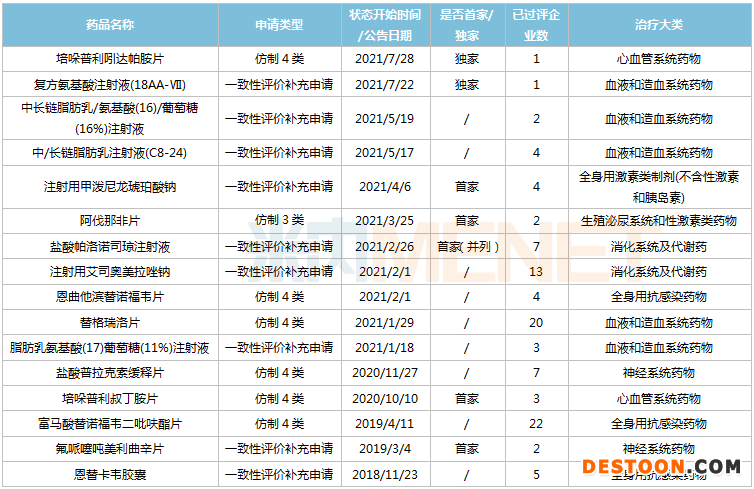 7个品种首家/独家过评,其中培哚普利吲达帕胺片、阿伐那非片、氟哌噻吨美利曲辛片为首仿+首家过评。