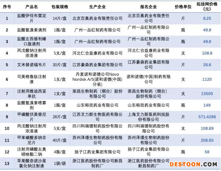 广东新获批上市的新品种拟挂网价格信息公示表(第三批)